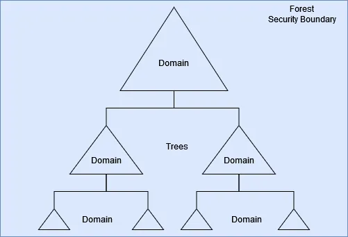 Multiple Domains can be linked together and they can share resources. Multiple Domains linked together are called Trees. Multiple Trees linked together are called Forests. Individual units (computers, users, printers, and other stuff) can be linked together in groups and units called Groups and Organizational Units respectively.